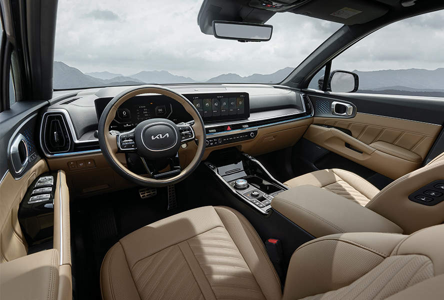 더 뉴 쏘렌토로 페이스리프트를 거쳐서 많은 변화를 보인 부분이 외관 디자인이라고 볼 수 있습니다. 우선 전면부를 살펴보면 기존의 쏘렌토의 수평형 헤드램프 구성이라면 이번에 나온 2024 쏘렌토 하이브리드는 수직형 레이아웃을 통해서 다른 면을 보여주고 있습니다. 시원시원한 라디에이터 그릴이 정중앙에 위치하여 차체가 넓고 우람한 모습을 보이게 되며 양쪽의 수직형 헤드램프가 안정적인 인상을 심어주는 것 같습니다. 이번 쏘렌토의 신형은 부분변경이다 보니 크기는 기존 23년식 모델과 동일하다고 알려져 있습니다. 그렇지만 세로로 길게 위치가 변경된 헤드램프는 요즘 기아에서 미는 패밀리룩이라 할 수 있는 '스타맵 시그니처 라이팅'이 차량을 좀 더 커 보이는 효과를 보여준다고 합니다. 전면부가 확 바뀐 느낌과는 다르게 후면부의 변화는 다소 미미합니다. 물론 테일램프 그래픽이 바뀌긴 했지만 기존 모델에서 보이는 모습과는 그 차이를 확 느낄 수준은 아닙니다. 실내 디자인을 살펴보자면 꽤나 많은 변화가 눈에 띕니다. 스티어링 휠의 디자인과 버튼 구성은 전부 기존과 동일하지만, 12.3인치의 클러스터와 수평으로 쭉 이어진 파노라믹 커브드 디스플레이가 새롭게 배치되었습니다. 이로 인해 간결하면서 깔끔한 실내 디자인을 이루고 있습니다. 센터패시아 아래쪽에 위치한 좌, 우가 이어진 모습의 송풍구 디자인이 있고 공조시스템을 조작하는 터치식 버튼들이 심플하면서 직관적인 모습을 보입니다. 요즘 트렌드에 딱 맞는 스타일의 구성을 갖추고 있는 것 같네요. 운전석과 조수석 사이의 센터터널에는 다이얼 방식의 전자식 변속기가 위치하고 무선 충전을 할 수 있는 트레이가 그 위에 자리 잡고 있습니다. 이번 페이스리프트에서 새롭게 추가된 지문 인식 센서가 하단에 따로 위치하고 있는데요, 이것을 통해 시동을 걸거나 개인화 설정 및 기아 CAR페이를 제공한다고 합니다. 실내 공간은 워낙에 기존 모델이 잘 나와서 그런지 이번 페이스리프트 된 모델에서도 크게 다르지 않네요. 넉넉한 레그룸과 헤드룸은 앞 좌석 과의 여유로운 공간까지 이미 충분해 보입니다. 이처럼 실내 공간감이나 시트구성은 기존과 동일하게 충분히 넓습니다. 요즘은 정말 외부디자인부터 실내까지 너무 예쁘게 잘 나오는 것 같습니다.